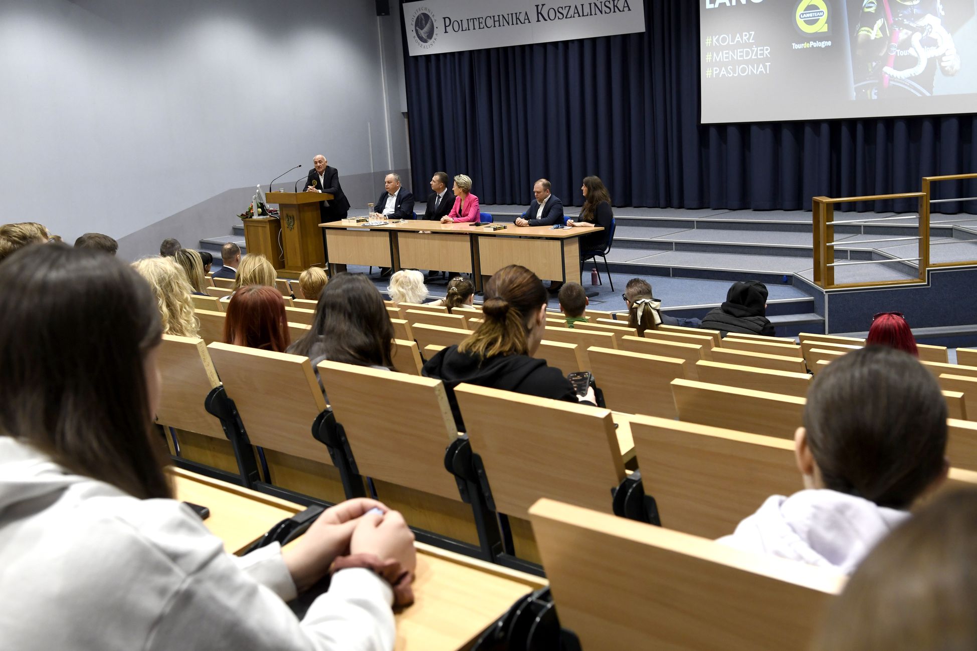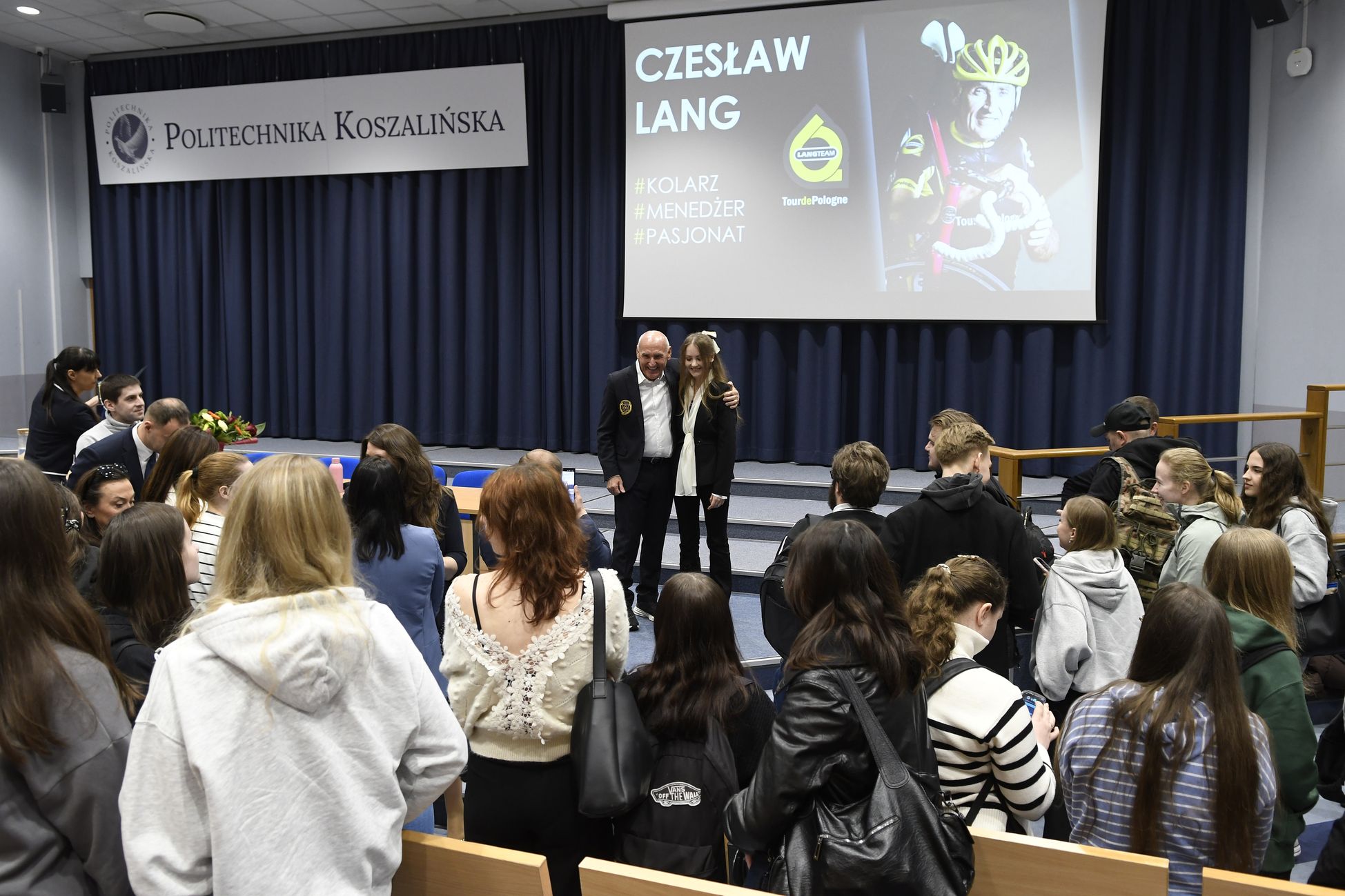 Dla studentek i studentów Czesław Lang wygłosił wykład, dzieląc się doświadczeniami w sporcie i biznesie. Trasa pierwszego etapu Tour de Pologne 2026 (start: 2 sierpnia br.) będzie wiodła z Gdyni (na 100-lecie miasta) do Koszalina (22 ekip, 170 zawodników, 240 km do przejechania). Czesław Lang nazwał go sentymentalnym, z uwagi na wybór miejscowości kaszubskich, skąd pochodzi, gdzie rozpoczynał karierę i dokąd chętnie wraca.