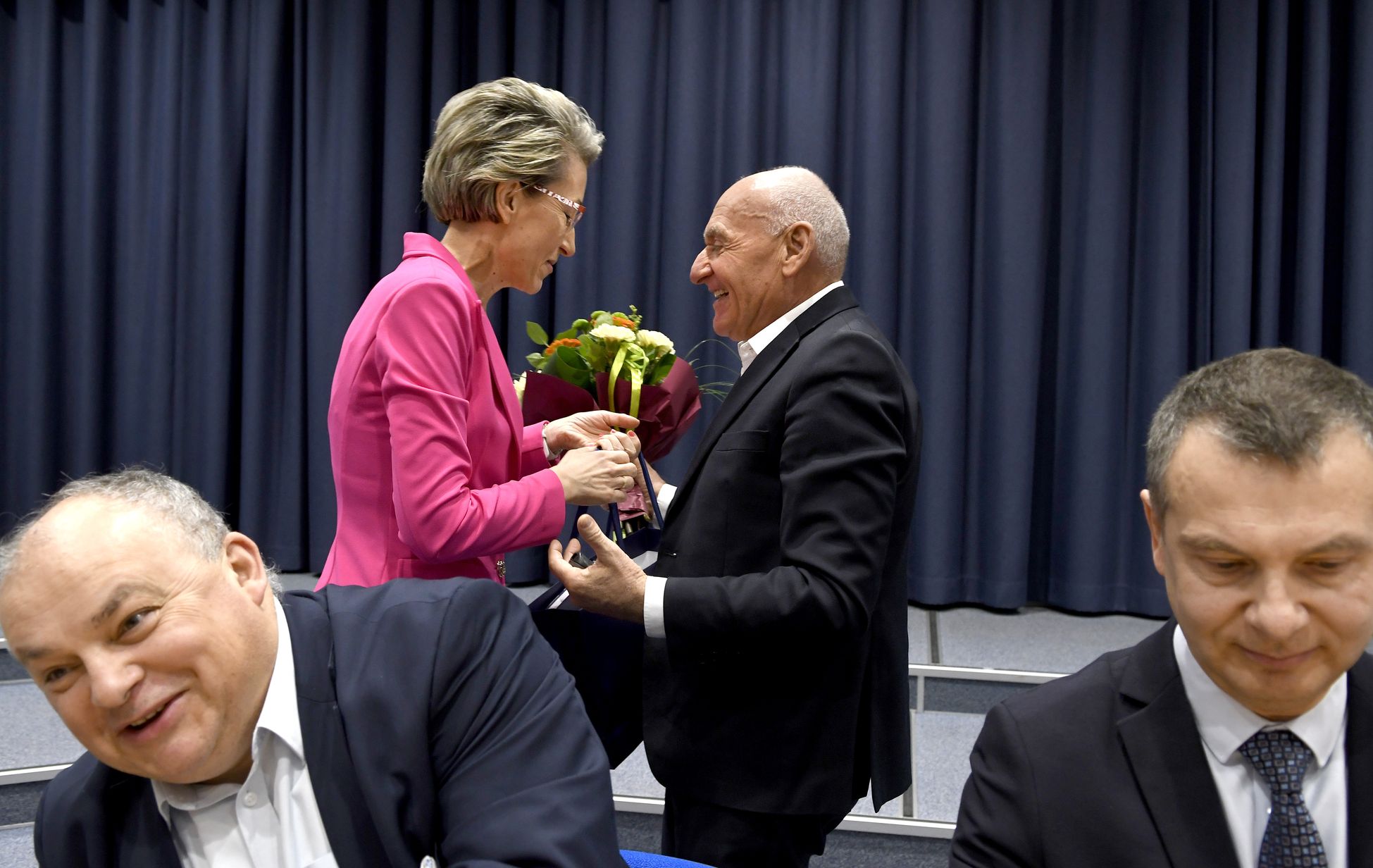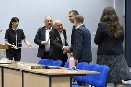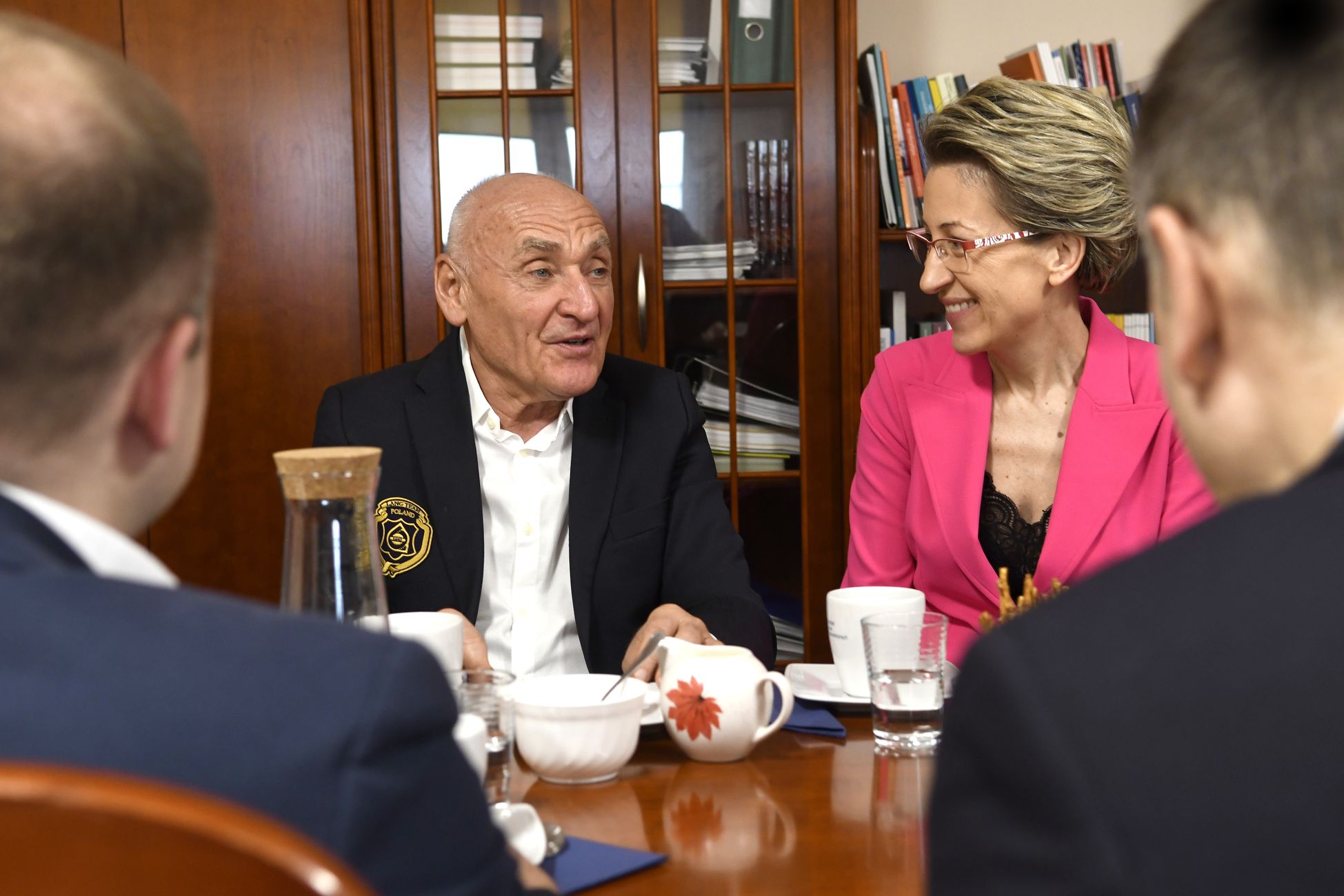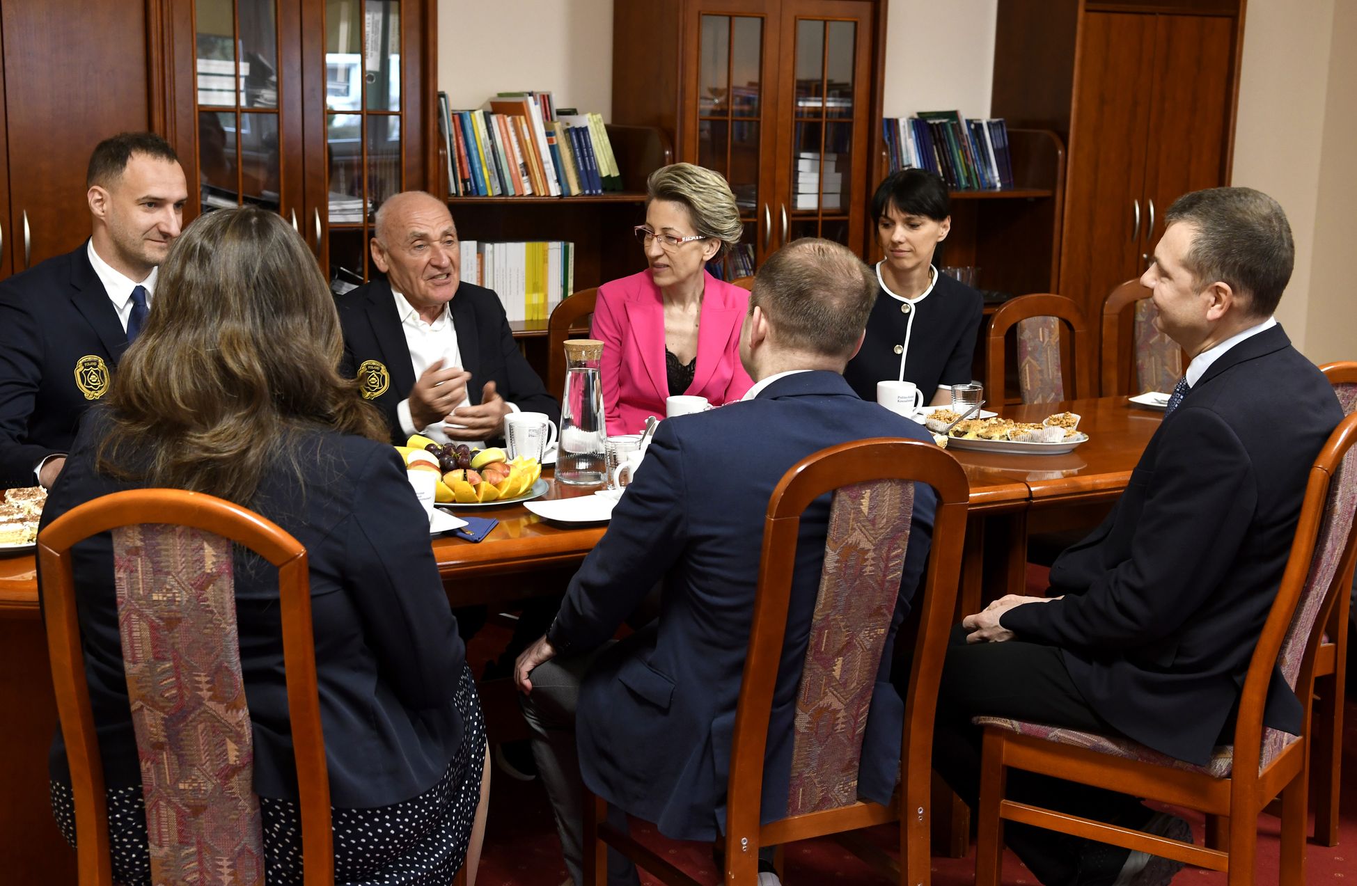 Czesławowi Langowi towarzyszył Janusz Siluta z Lang Team. Poza prof. Danutą Zawadzką, w rozmowach wzięli udział: dr hab. inż. Tomasz Królikowski, prof. PK, prorektor ds. studenckich; dr hab. Grzegorz Przekota, prof. PK, dziekan WNE; dr Agnieszka Strzelecka, prodziekan ds. kształcenia WNE; dr Ewa Szafraniec-Siluta z WNE; dr Krzysztof Dziadek, prodziekan ds. studenckich WNE, prezes Klubu Kibica PK, który sam biega i jeździ rowerem, a teraz przypomniał, że wśród studentów są osoby próbujące sił w kolarstwie.