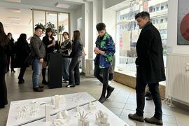 Wczoraj (14.04.2026 r.) w Galerii Amfiteatr i prywatnej instytucji kultury Ko_Stacja odbył się wernisaż wystawy "Mistrz i Uczeń" prezentujący dorobek projektowy wykładowców, absolwentów, studentów i przyjaciół Wydziału Architektury i Wzornictwa Politechniki Koszalińskiej. W tegorocznej odsłonie bierze udział 67 twórców, którzy prezentują swoje prace i projekty, opowiadają o współpracy i wymieniają się doświadczeniami. Hasłem przewodnim wydarzenia jest PROCESSUS. Uczestnicy odnoszą się do procesu twórczego, ale też rejestracji powstawania dzieła, rejestracji jego odbioru, rejestracji czasu, degradacji, tworzenia i rodzenia się nowych idei. Na wystawie prezentowane są projekty z zakresu sztuk projektowych, wizualnych i pięknych. Wystawa potrwa do 29 kwietnia 2026 r.