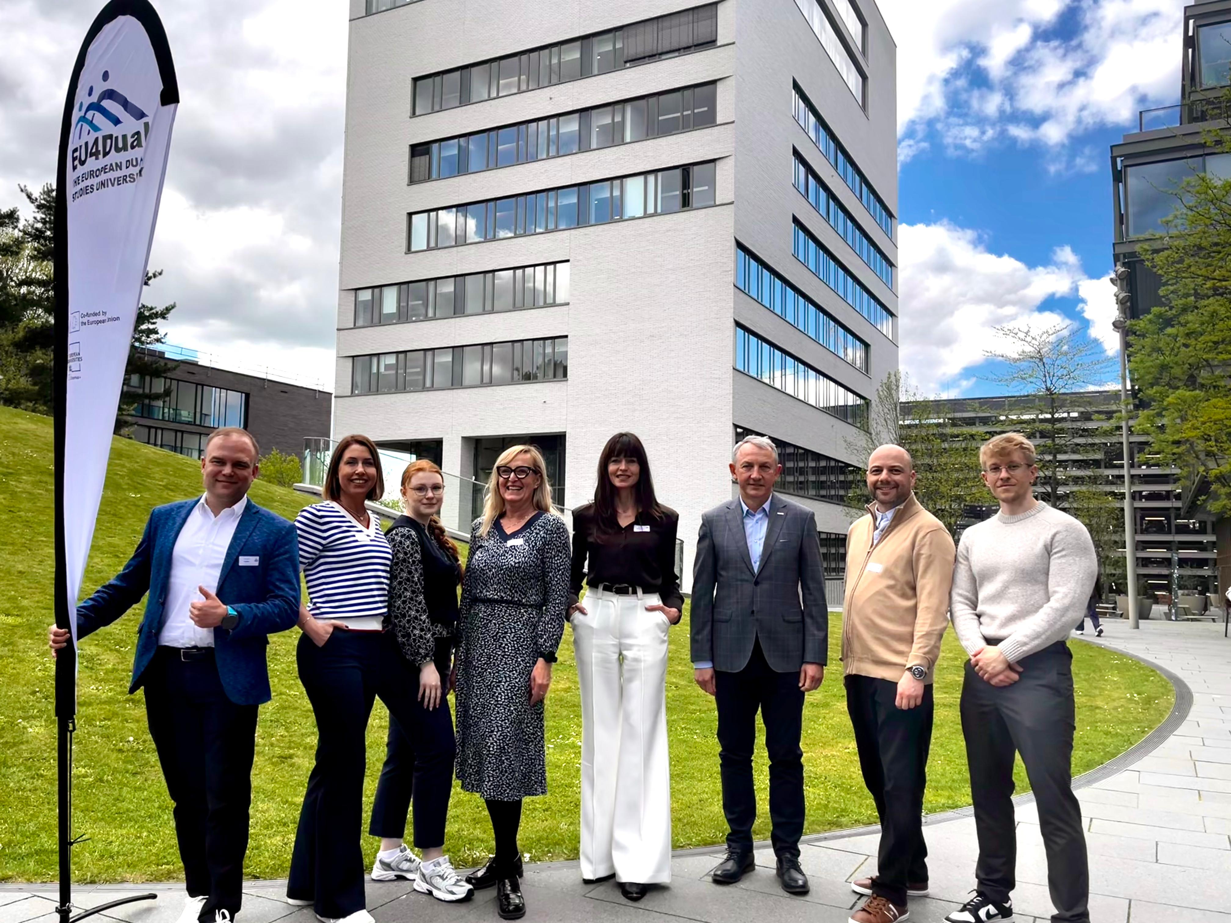 Trwają spotkania robocze przedstawicieli aliansu EU4Dual poprzedzające doroczną konferencję. Oba wydarzenia mają miejsce w murach DHBW - Duale Hochschule Baden-Württemberg (DHBW) w Heilbronn (Niemcy). Spotkania stanowią kluczowy etap przygotowań do głównego wydarzenia oraz ważną przestrzeń współpracy partnerów sojuszu. W ciągu tych dwóch dni zaplanowano intensywny program angażujący przedstawicieli uczelni, administracji, środowiska naukowego, studentów, doktorantów oraz partnerów z otoczenia społeczno-gospodarczego.