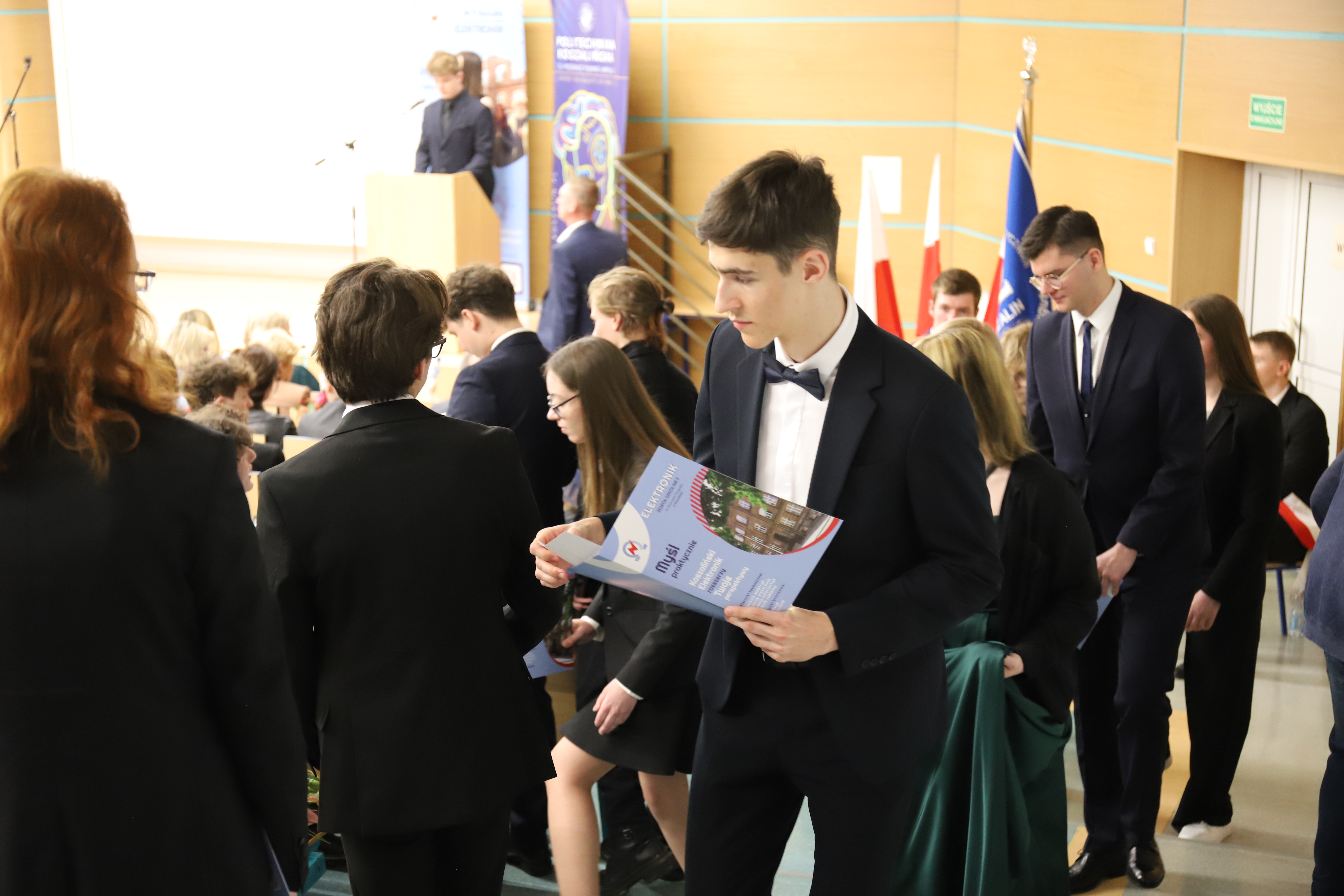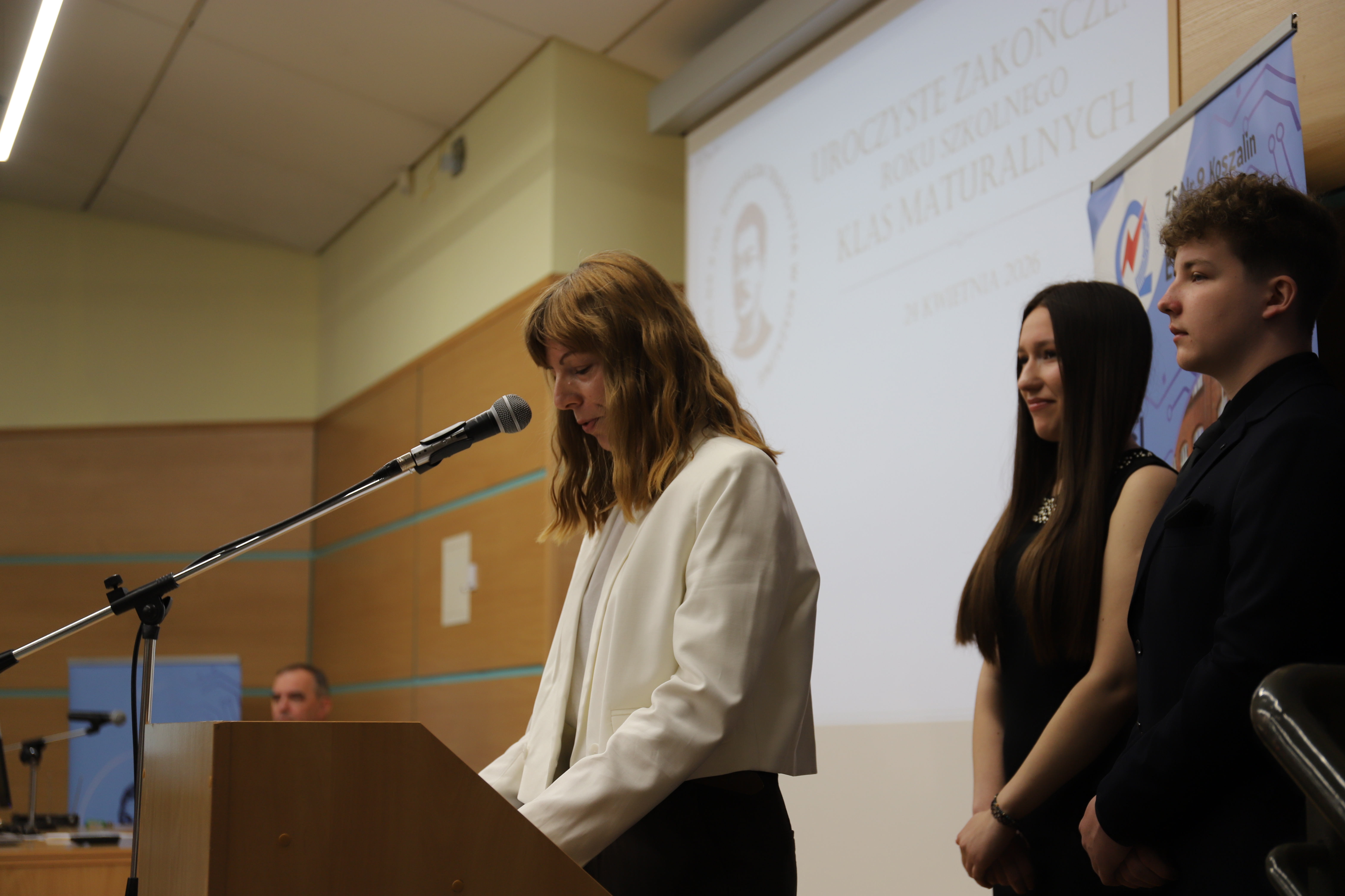 W wydarzeniu uczestniczyli maturzyści, nauczyciele, rodzice oraz zaproszeni goście. Uroczystość rozpoczęła się od oficjalnego powitania zebranych przez dyrektor placówki Anettę Wilk. Głos zabrali także przedstawiciele Politechniki Koszalińskiej dziekan Wydziału Elektroniki i Informatyki , prof. dr hab. inż. Krzysztof Rokosz i prodziekan ds. kształcenia Wydziału Architektury i Wzornictwa, dr hab. Anna Szklińska, prof. PK.