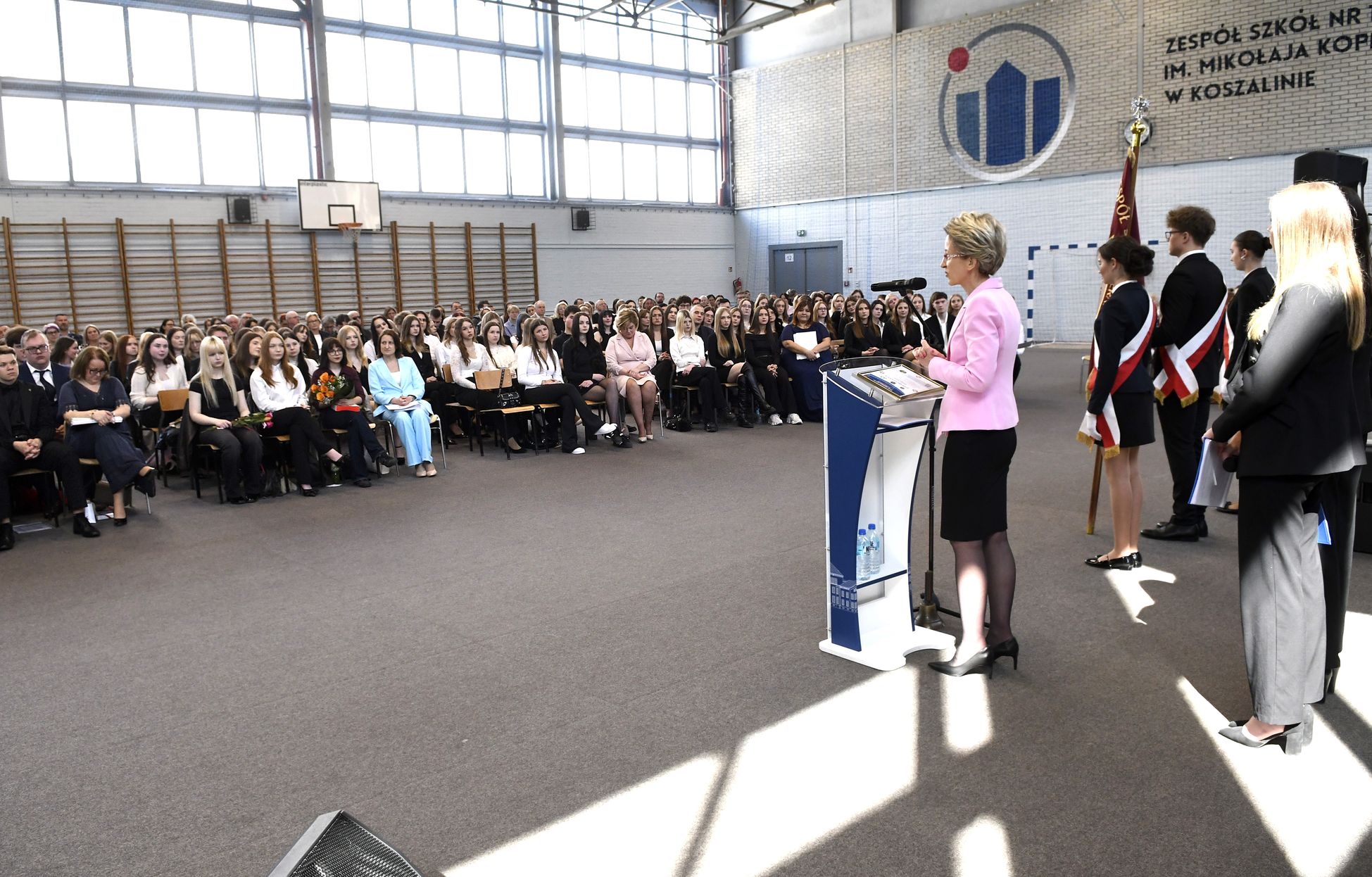 W piątek, 24 kwietnia, w siedzibie Zespołu Szkół nr 1 im. Mikołaja Kopernika w Koszalinie odbyła się uroczystość zakończenia roku szkolnego uczniów klas maturalnych. Dla absolwentów był to dzień szczególny, zamykający ważny etap nauki i otwierający drogę do kolejnych życiowych decyzji. Spotkaniu towarzyszyły emocje, wspomnienia oraz poczucie dumy z osiągniętych rezultatów. W wydarzeniu uczestniczyli tegoroczni maturzyści, dyrekcja szkoły, grono pedagogiczne, rodzice, zaproszeni goście. Obecni byli: rektor Politechniki Koszalińskiej dr hab. Danuta Zawadzka, prof. PK i Piotr Huzar, prezes Koszalińskiej Izby Przemysłowo-Handlowej i przewodniczący Rady Uczelni.