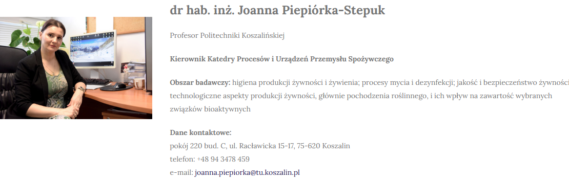 Katedra Procesów i Urządzeń Przemysłu Spożywczego
