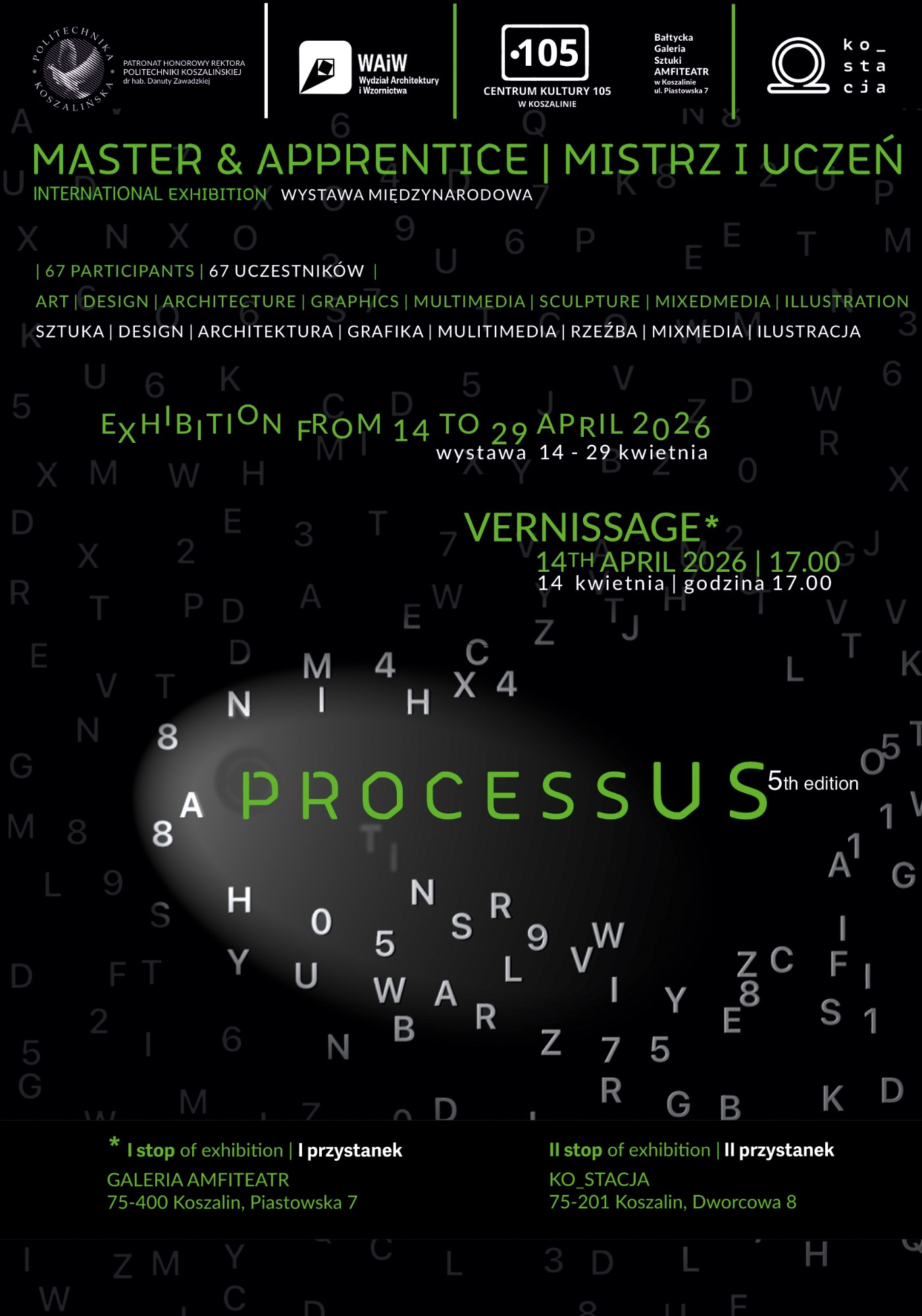 Hasłem przewodnim wystawy jest PROCESSUS. Uczestnicy odniosą się nie tylko do procesu twórczego, ale i rejestracji powstawania dzieła, rejestracji jego odbioru rejestracji czasu, degradacji, tworzenia i rodzenia się nowych idei.