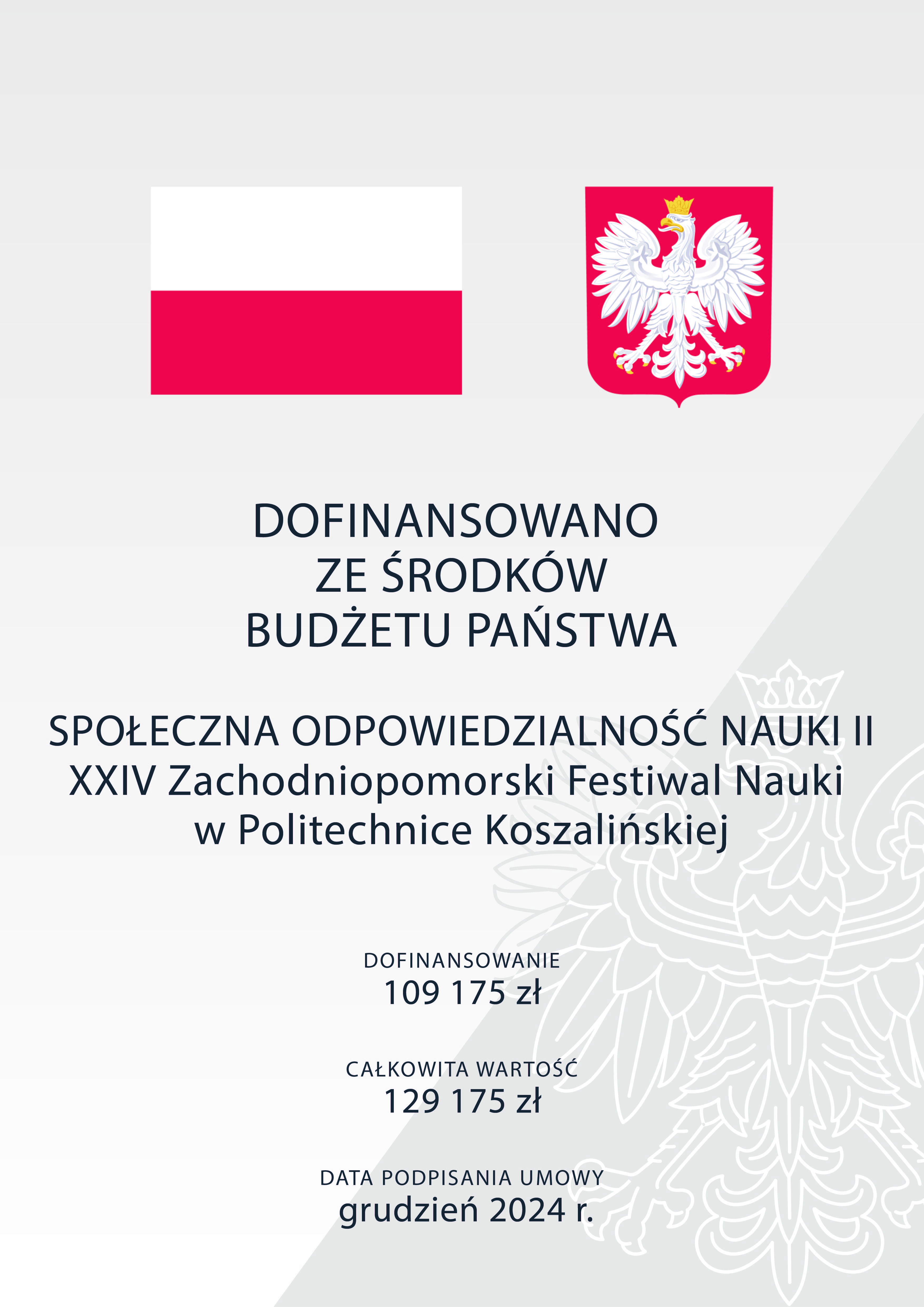 Zachodniopomorski Festiwal Nauki w Politechnice Koszalińskiej odbędzie się 25 września 2025 r. na terenie dwóch kampusów, tj. przy ul. Śniadeckich 2 oraz ul. Racławickiej 15-17.